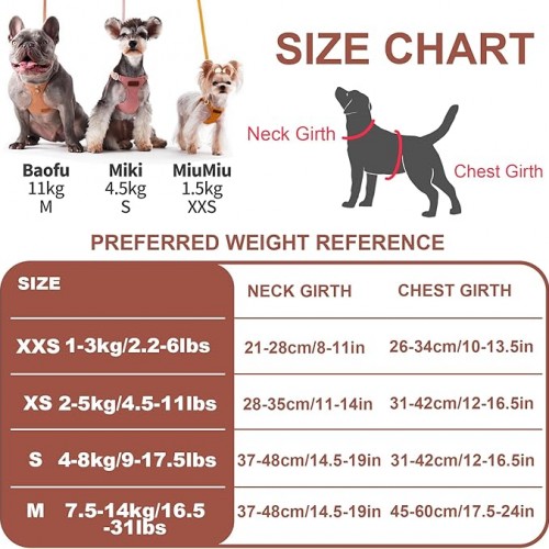 - No pull dog harness:No pull dog harness:Weight as low as 1.19 oz,undoubted ultra-light harness.Perfect tailoring design,patented rounded adjustment buckle,effectively protect the dog’s bones and muscles during exercise to avoid injury.