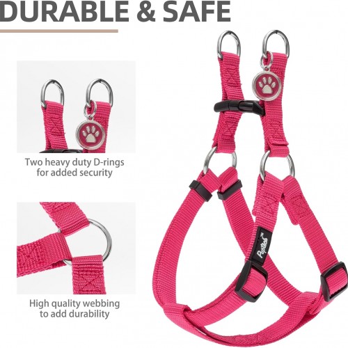 PUPTECK No Pull Dog Harness Soft Adjustable Basic Nylon Step in Puppy Vest Outdoor Walking with ID Tag and A-ir Tag Case, Hot Pink, XS