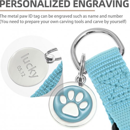 - [Cute ID Tag for DIY] – Each harness is equipped with a metal ID tag, and the front is a cute paw pattern, while on the back, you can engrave whatever you want, such as the dog’s name and so on. It does not corrode as easily as wooden labels and is durable. You can also remove it when washing the harness.