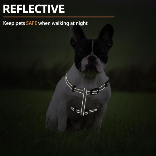 - [No Pull, No Choke] – Both sides of the harness are like a triangle structure, which can wrap around the dog’s body perfectly, you will feel good control during use. And the stress is on the dog’s chest, not its neck, so this harness allows dogs to breathe freely.