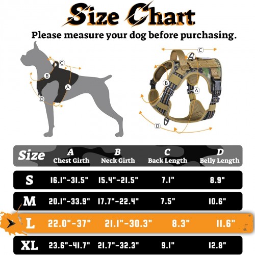 - Customizable Fit: The large dog harness has a chest girth of 22.0″-37.0″ and a neck girth of 21.1″-30.3″, with plenty of room for adjustment, making it suitable for breeds like Husky, Golden Retriever, German Shepherd, Bulldog, Rottie Puppy, Belgian Malinois, and more