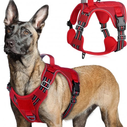 - Control in Multiple Ways: The no-pull dog harness has two metal leash attachment points for various conditions and may be used for a variety of activities like daily walking, jogging, running, trekking, hunting, and training. Furthermore, the ergonomic top handle may be handy for additional training support or carrying assistance