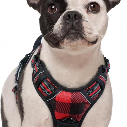 rabbitgoo Dog Harness Medium Sized, No Pull Dog Vest with 3 Buckles, Adjustable Soft Padded Pet Harness with Easy Control Handle and Reflective Strips, Pink, M