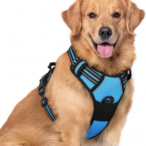 rabbitgoo Dog Harness Medium Sized, No Pull Dog Vest with 3 Buckles, Adjustable Soft Padded Pet Harness with Easy Control Handle and Reflective Strips, Rose Pink & Blue, M