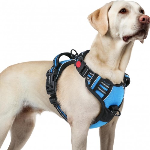 - Control in Multiple Ways: The no-pull dog harness has two metal leash attachment points for various conditions and may be used for a variety of activities like daily walking, jogging, running, trekking, hunting, and training. Furthermore, the ergonomic top handle may be handy for additional training support or carrying assistance