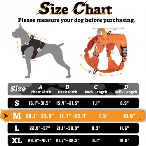 - Customizable Fit: The medium dog harness has a chest girth of 20.1″-33.9″ and a neck girth of 17.7″-22.4″, with plenty of room for adjustment, making it suitable for breeds like German Pointers, Huskies, Golden Retrievers, German Shepherds, American Bulldogs, and more