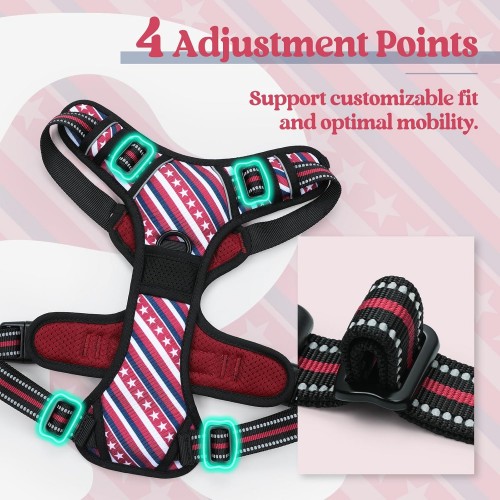 - Fully Adjustable – This adjustable harness features 4 easy adjusting straps around the body. You can use its 2 neck straps and 2 chest straps to create a perfect fit for your dog with some room of growth. No worries about slipping out or choking