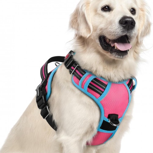 - Safe and Comfortable – Your dog will enjoy the daily walk in this comfort dog harness! Made of sturdy nylon oxford and padded with soft cushion to protect your dog’s skin. Breathable air mesh keeps your dog cool during outdoor activities. Super bright reflective strips ensure a safe walk both day and night