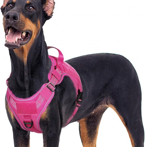- Safe and Comfortable – Your dog will enjoy the daily walk in this comfort dog harness! Made of sturdy nylon oxford and padded with soft cushion to protect your dog’s skin. Breathable air mesh keeps your dog cool during outdoor activities. Super bright reflective strips ensure a safe walk both day and night