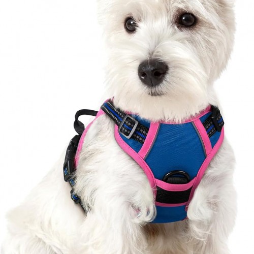 rabbitgoo Dog Harness No Pull with 2 Leash Clips, Adjustable Soft Padded, Reflective Oxford No Choke Pet Vest with Easy Control Handle for Medium Sized Dogs, Hot Pink, M
