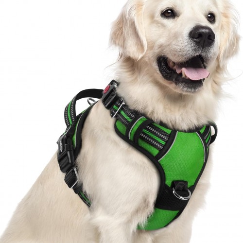 - Easy to Use – This hassle-free overhead harness is easy to put on and take off with its 2 fast-release buckles. Slide the harness over your dog’s head, buckle it up, adjust the straps, and here you go! Grab the top handle for additional control. Lightweight and easy to clean