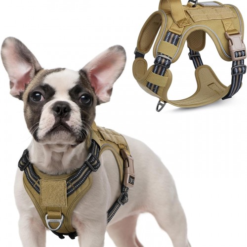 rabbitgoo Tactical Dog Harness for Small Dogs, No Pull Military Service Vest with Handle & Molle, Easy Control for Training Walking, Adjustable Reflective Straps, Dark Grey, S