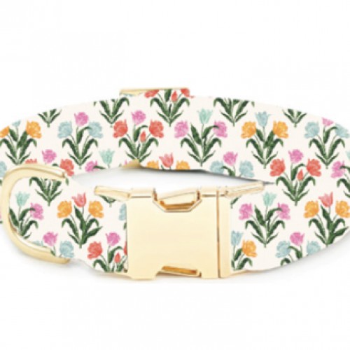 Soft natural fabric on the outside and inside – perfect for sensitive pups with nylon allergies or chafing -Nylon webbing core can withstand over one thousand pounds of pull -Reinforced box stitches at all stress points -Luxe metal hardware MATERIALS AND CARE -100% cotton fabric exterior, nylon webbing interior -Hardware: gold zinc alloy with a solid brass D-ring -Hand wash or machine wash cold on delicate cycle inside a bag or pillowcase to protect the hardware. Air dry flat.