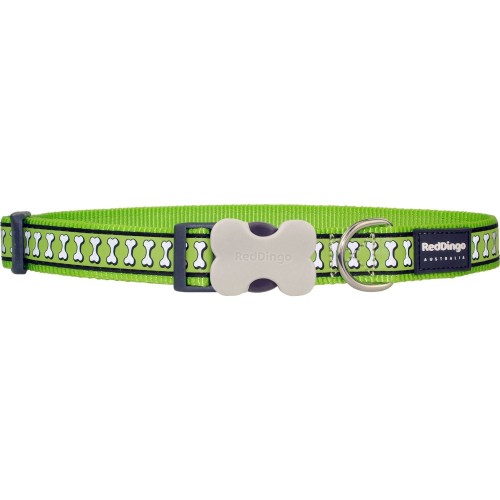 Reflective Bones Lime Green Dog Collar