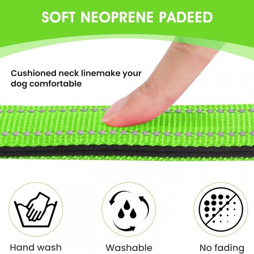 - [ High Quality Materials ] : The outside of the adjustable dog collar made of polyester with a soft neoprene rubber liner inside.The combination of the two materials makes dog collars more durable and lightweight,quick drying, odorless and tasteless.Can be used for a long time, Hand wash only and Fadeless, ir dry in a ventilated environment.
