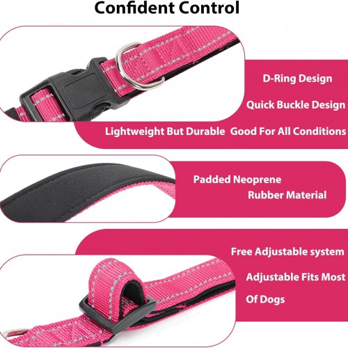 - [ Safe and comfortable ] PenSeepet reflective dog collar for medium dogs with Highly reflective at night for safety. And you can easy find your furry pet.Dog collar is made of nylon with thick neoprene padding on the back, making it soft,This prevents any irritation on you pet,Wearing it for a long time is more comfortable. Walking with you is more enjoyable.