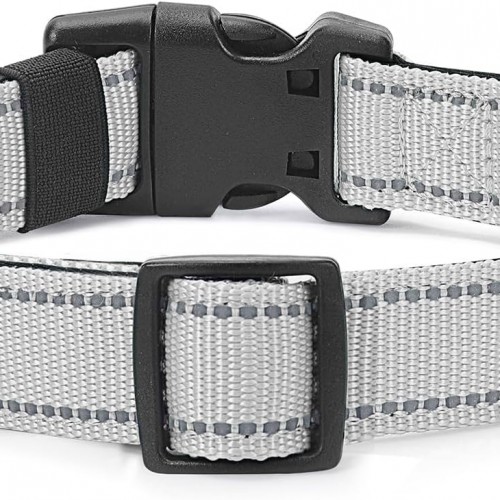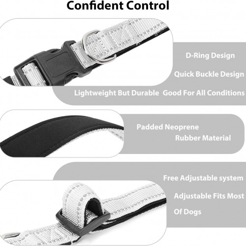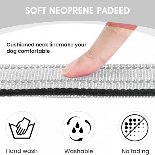 Reflective Dog Collar Padded with Soft Neoprene Breathable Quick Release Basic Dog Collars for Medium Large Dogs Boy Girl Silver