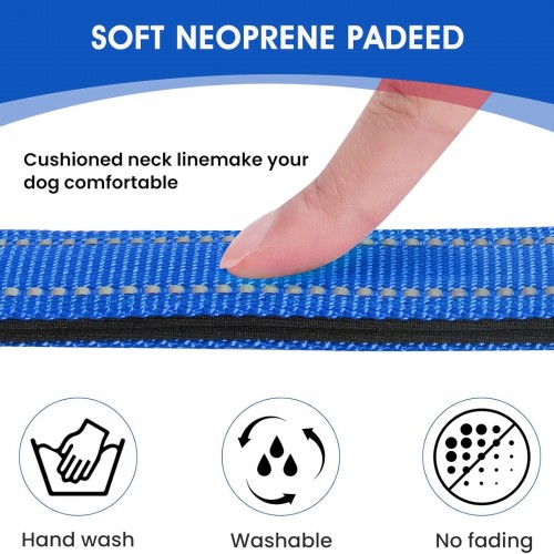 - [ High Quality Materials ] : The outside of the adjustable dog collar made of polyester with a soft neoprene rubber liner inside.The combination of the two materials makes dog collars more durable and lightweight,quick drying, odorless and tasteless.Can be used for a long time, Hand wash only and Fadeless, ir dry in a ventilated environment.