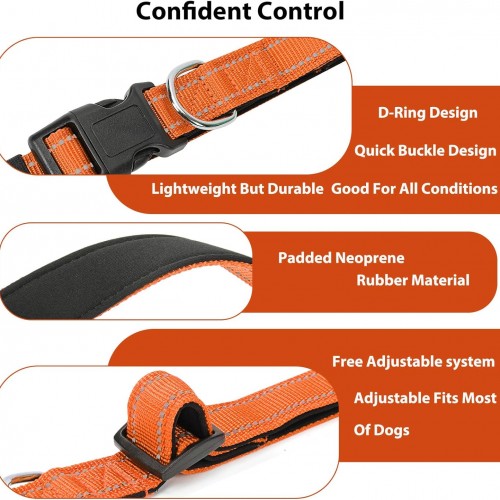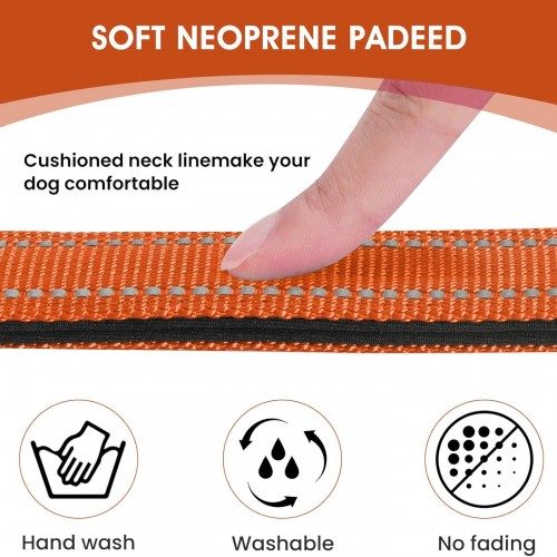Reflective Dog Collar Padded with Soft Neoprene Breathable Quick Release Basic Dog Collars for Puppy Small Dogs Orange