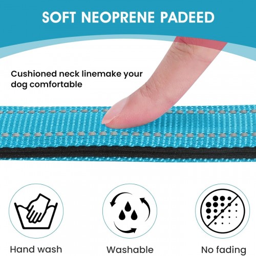 - [ High Quality Materials ] : The outside of the adjustable dog collar made of polyester with a soft neoprene rubber liner inside.The combination of the two materials makes dog collars more durable and lightweight,quick drying, odorless and tasteless.Can be used for a long time, Hand wash only and Fadeless, ir dry in a ventilated environment.