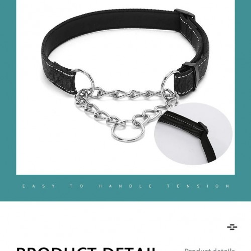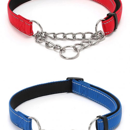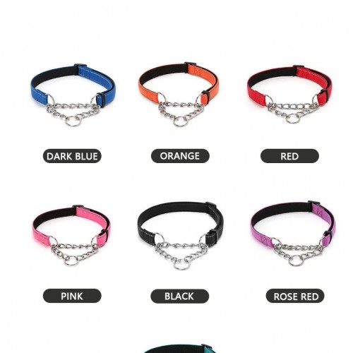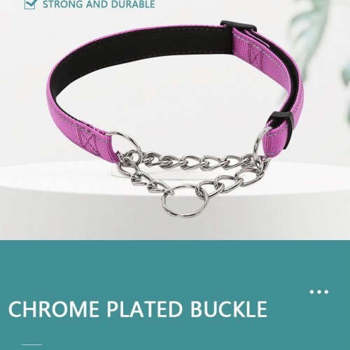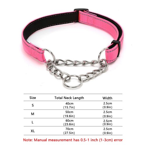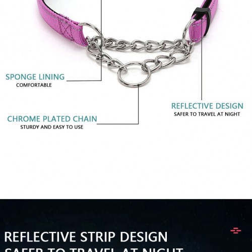 Reflective Martingale Dog Collar with Stainless Steel Chain – No Pull Training Collar for Small, Medium & Large Dogs