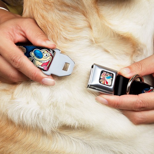 Ren & Stimpy Pose Black Seatbelt Buckle Collar – REN & STIMPY Poses Black/Blue/Yellow