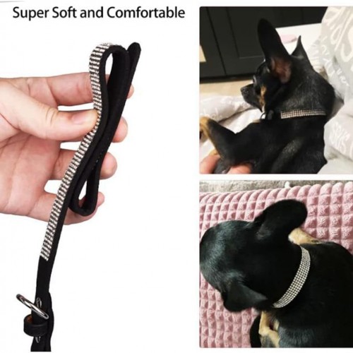 Rhinestone Dog Collar for Small Dogs, Bling Diamond Fancy Crystal Glitter Pretty Jewel Pet Puppy Collars for XXS XS Small Medium Large Breed Girl Dogs Female Cats Kitten, Colorful Black S