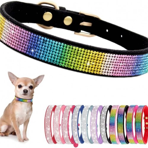 Rhinestone Dog Collar for Small Dogs, Bling Diamond Fancy Crystal Glitter Pretty Jewel Pet Puppy Collars for XXS XS Small Medium Large Breed Girl Dogs Female Cats Kitten, Purple S