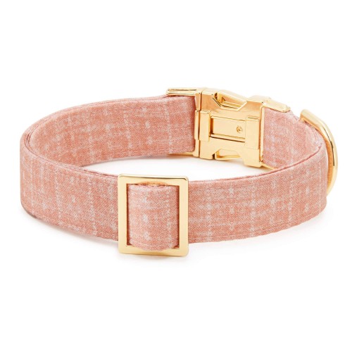 Soft natural fabric on the outside and inside – perfect for sensitive pups with nylon allergies or chafing -Nylon webbing core can withstand over one thousand pounds of pull -Reinforced box stitches at all stress points -Luxe metal hardware MATERIALS AND CARE -100% cotton fabric exterior, nylon webbing interior -Hardware: gold zinc alloy with a solid brass D-ring -Hand wash or machine wash cold on delicate cycle inside a bag or pillowcase to protect the hardware. Air dry flat.