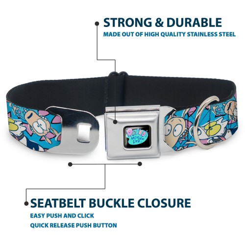 ROCKO’S MODERN LIFE Logo Full Color Black/Blues Seatbelt Buckle Collar – Rocko & Spunky Scattered Expressions/Triangles Blue/Lavender