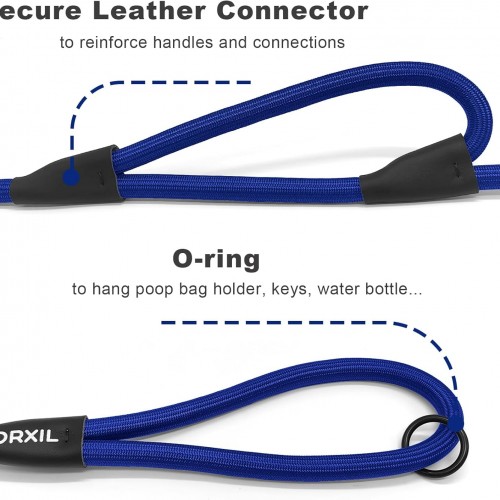 Rope Dog Leash with Two Handles, 6 Foot Heavy Duty Dog Leash with Aviation Aluminum Auto Locking Carabiner, Strong Nylon Pet Lead for Small, Medium, Large Dogs (Blue, 6FT-Two Handle)