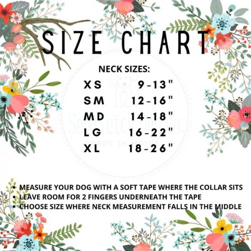 Sew Fetch hand sewn collars are made with vibrant printed fabrics, sewn on heavy duty nylon webbing. All collars are adjustable with a nickel plated metal slide. All collars are finished with a nickel plated heavy duty welded D ring, sewn in beside a heavy plastic YKK brand buckle. Exact placement of each print will vary as all products are cut from fabric, ironed and sewn. Each is unique in their own way!