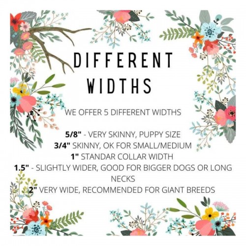 We strive for perfection in the production of our collars, please know they are handmade with love in our small shop. All pieces of fabric are cut, ironed, and sewn to be the right fit for your dog. Exact pattern placement will vary from collar to collar, though we aim to make sure the best pieces are visible. Different widths will show more or less of the pattern, the collar photographed in the listing is 1″ wide.