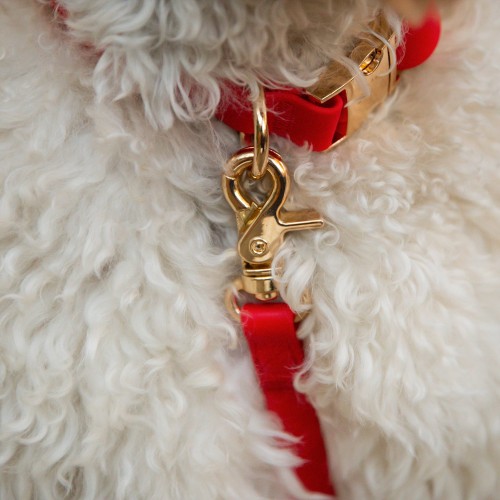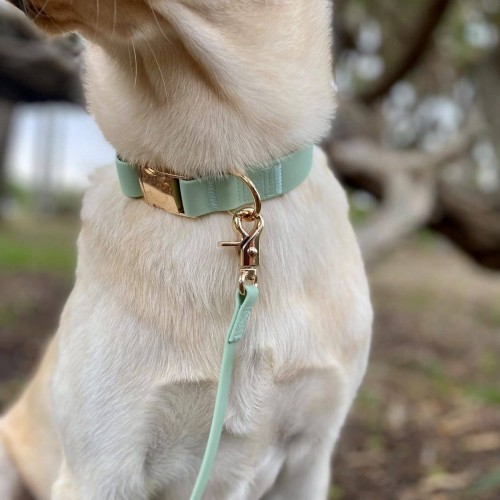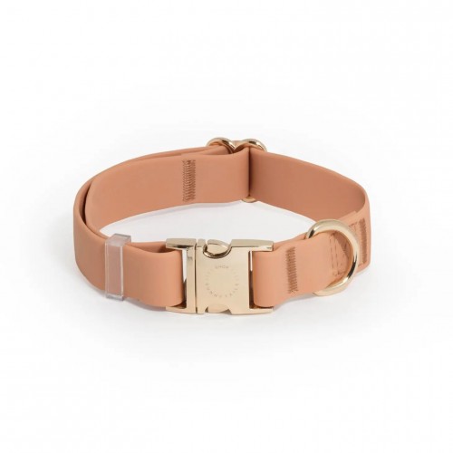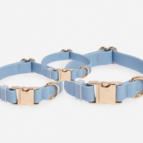 Explore our lightweight, buttery soft, odor resistant, all-weatherproof Cloud Dog Collar we developed using 100% vegan PVC coated webbing that’s been tested to withstand approximately 750 lbs of pull. Collars are finished with luxe light gold rust-resistant quick release buckle.