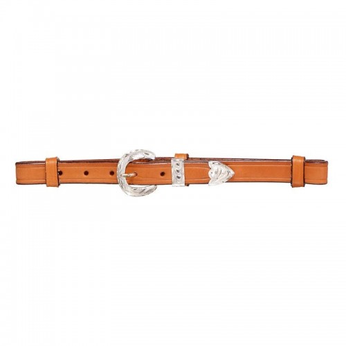 - Silver buckle, tip, and keeper