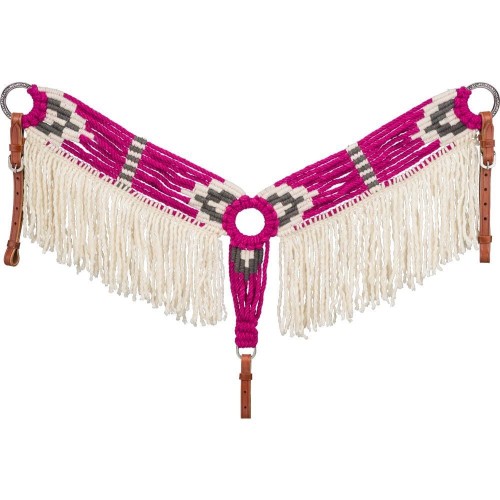 This natural roughout wither strap features subtle carved tooling and a bold chocolate buckstitch edge. Designed to easily clip onto the saddle, this strap helps to hold your breastcollar up in the right position while riding. Complete with stainless steel hardware that allows for fit adjustments.