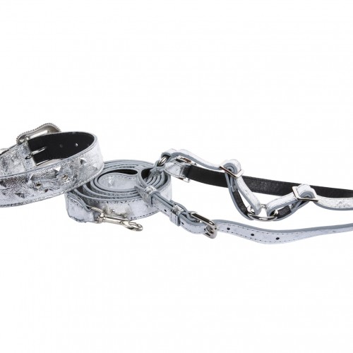 Silver Studded Italian Leather Collar, Leash Harness Set