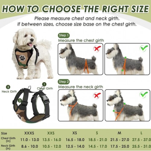 - BREATHABLE MESH CHEST VEST HARNESS — It’s made of the double mesh fabric with the flannelette edge and padded with a soft cushion, attached to four PP material strap which is highly durable designed to disperse the dog’s weight onto the chest to not choke the pet’s trachea.