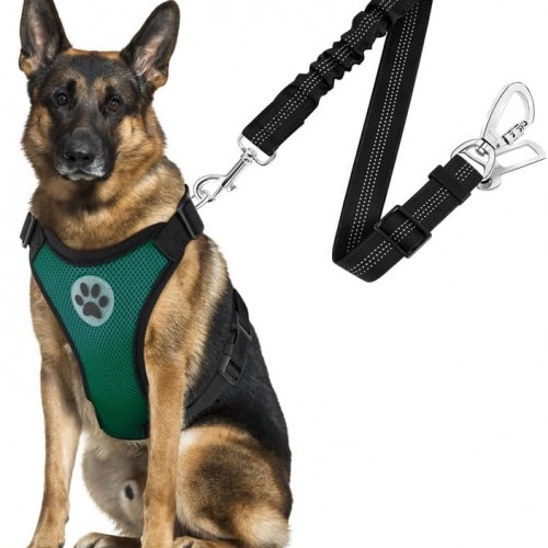 - KEEP YOUR FURRY FRIEND SAFE — Mesh chest vest harness and 2 in 1 dog car seat belt works well together, this holds your pet securely in his place. Reduced puppy barking and anxious in the car, and when he does go off, he cannot get far. But the dogs can still move around, lie down, see out of the windows. This harness and seat belt made the long trip a lot more pleasant for you and your puppy.