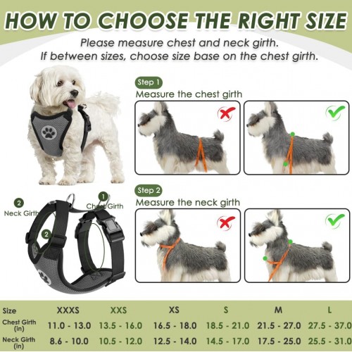 - BREATHABLE MESH CHEST VEST HARNESS — It’s made of the double mesh fabric with the flannelette edge and padded with a soft cushion, attached to four PP material strap which is highly durable designed to disperse the dog’s weight onto the chest to not choke the pet’s trachea.