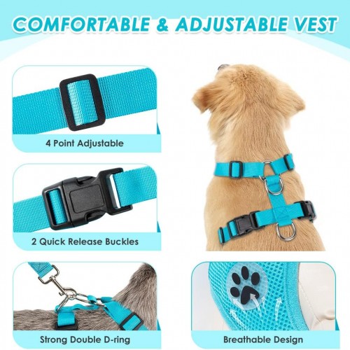 SlowTon Dog Seat Belt Harness for Car, Dog Car Harness Adjustable Mesh Breathable & Dog Seatbelt Safety Tether with Elastic Bungee for Small Medium Large Pets(Light Blue, Double Clip, XXXS)