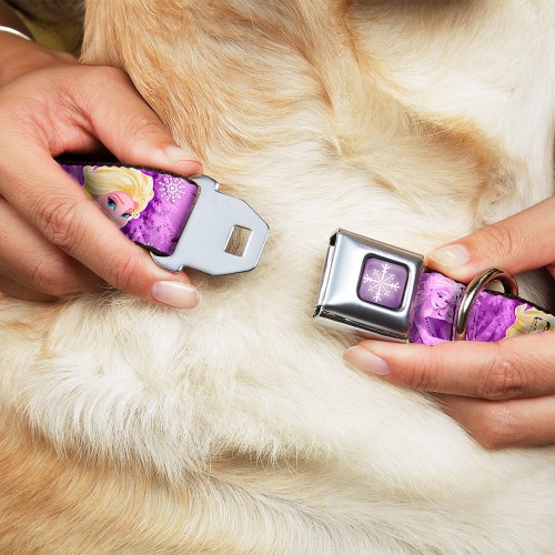 Snowflake Full Color Purple White Seatbelt Buckle Collar – Frozen Anna/Elsa/Olaf Poses/Scenes Purples