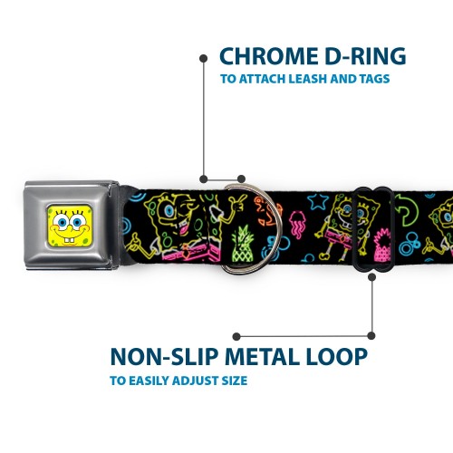 SpongeBob Face CLOSE-UP Full Color Seatbelt Buckle Collar – Electric SpongeBob Poses/Elements Black/Multi Color