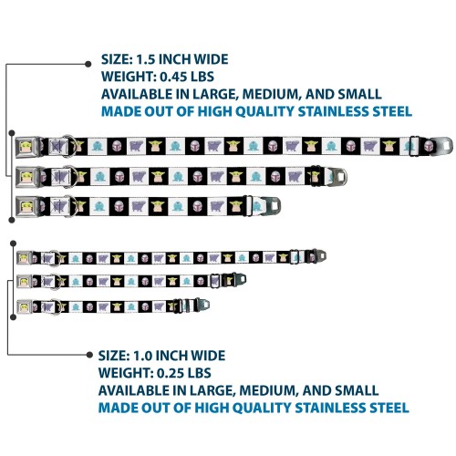 Your dog will be the talk of the town when people notice they’re wearing this awesome SeatBelt Dog Collar! Made from high-density polyester and durable steel components, this collar is built to last. It features beautiful vibrant artwork. The buckle is a miniature authentic SeatBelt Buckle, so you press the center button to release the clasp. This product is Made in USA by Buckle-Down Inc. and officially licensed by Lucasfilm Ltd.