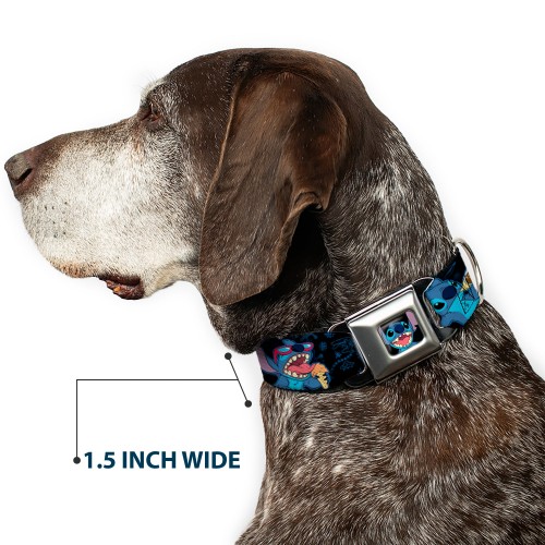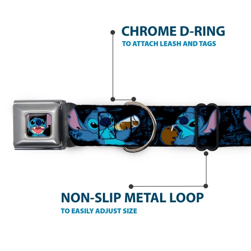 Stitch Smiling CLOSE-UP Full Color Black Seatbelt Buckle Collar – Stitch Snacking Poses Black/Blue