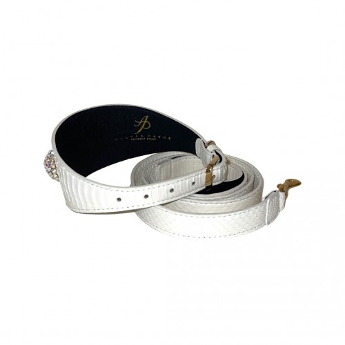 Stunning Matte White 3 Wide Style Collar & Leash Set, With Our Custom Swarovski Rivets