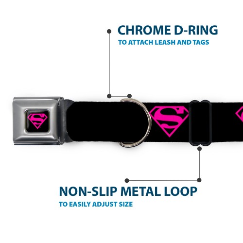 Superman Black/Hot Pink Seatbelt Buckle Collar – Superman Shield Black/Hot Pink