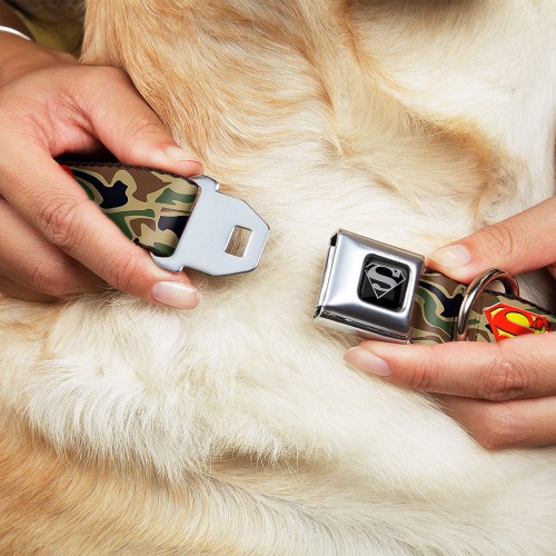 Superman Black Silver Seatbelt Buckle Collar – Superman Shield Camo Olive