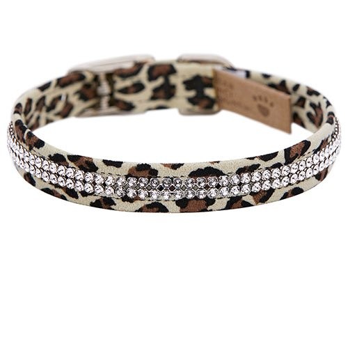 This collar is made from genuine upholstery grade Ultrasuede® fabric that we import from Japan. This soft, comfortable fabric is breathable, washable and colorfast. For the crystal, we use Swarovski Crystallized Components exclusively. As an assurance to both you and your customer, each item comes with an Ultrasuede® tag and a Made with CRYSTALIZED – Swarovski Elements hang tag that displays our registration number.