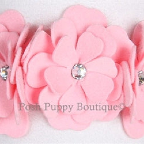 The lovely Tinkie’s Garden Flower blooms with a bouquet of petals that are exquisitely accented with a single genuine Swarovski Crystal for a touch of bling. This 1/2 inch collar is comfortable for your dog and easy for you to maintain. In addition to that, the fabric gives you a wide range of colors – from soft pastels to vibrant hues. Like all of our designs, it is made from genuine commercial upholstery grade Ultrasuede® fabric that we import from Japan. This soft, comfortable fabric is breathable, washable and colorfast.